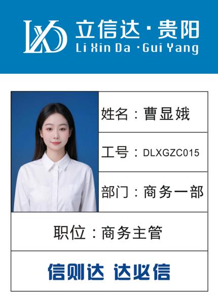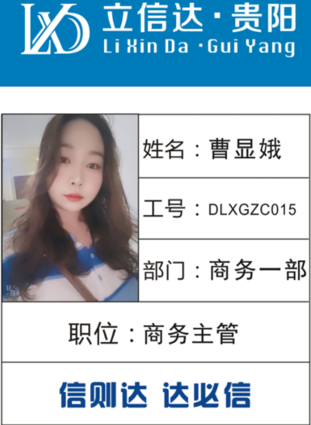 姓名:曹顯娥 工號:DLXGZC015 部門:貴一一部 職位:商務主管