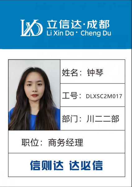姓名:鐘琴 工號:DLXSC2M017 部門:川二二部 職位:商務經理