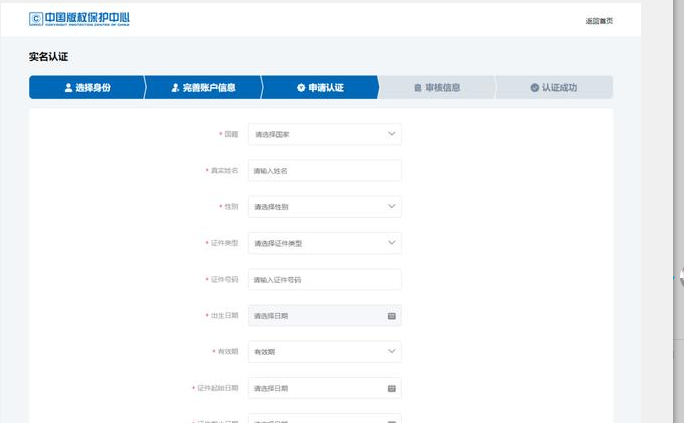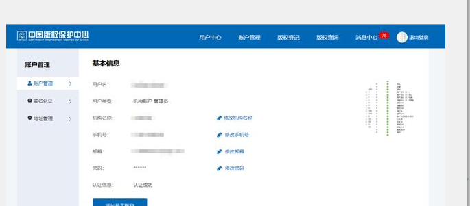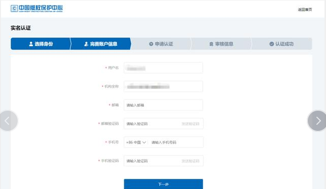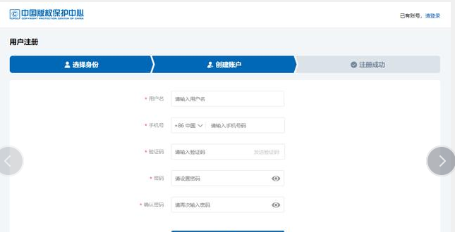3、著作權人需要提前自己在官網進行注冊用戶名并填寫著作權人真實信息。。