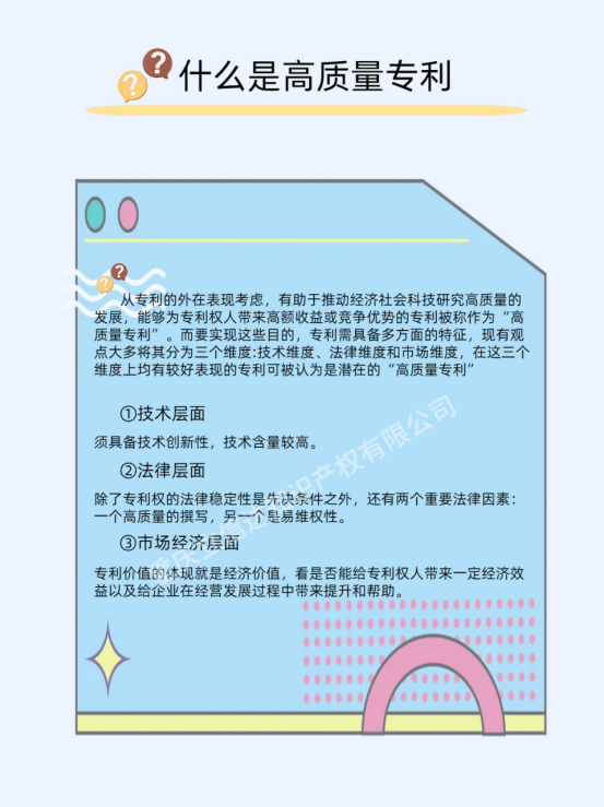 從專利的外在表現考慮,有助于推動經濟社會科技研究高質量的發展,能夠為專利權人帶來高額收益或競爭優勢的專利被稱作為“高質量專利”。