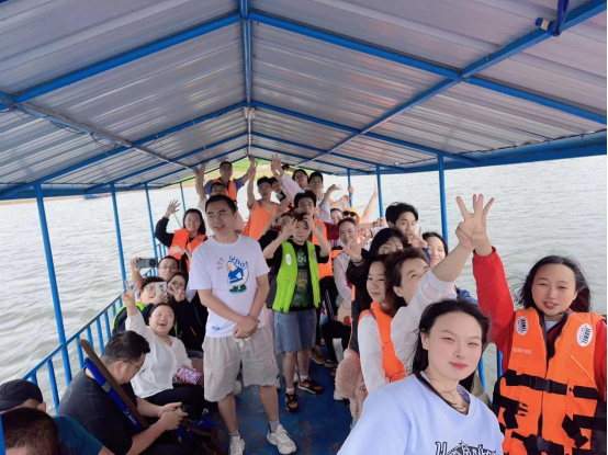 到了地方之后,開始了安營扎寨,過程雖有波瀾,但好在大大小小的帳篷都拔地而起,熱鬧過后看到了??吭诎哆叺拇?,大家又不約而同的決定乘船。山里長大的孩子總是對水情有獨鐘,等了一會,船終于開了,風(fēng)很大,卻吹不走美妙的景色,吹不走我們的熱情。