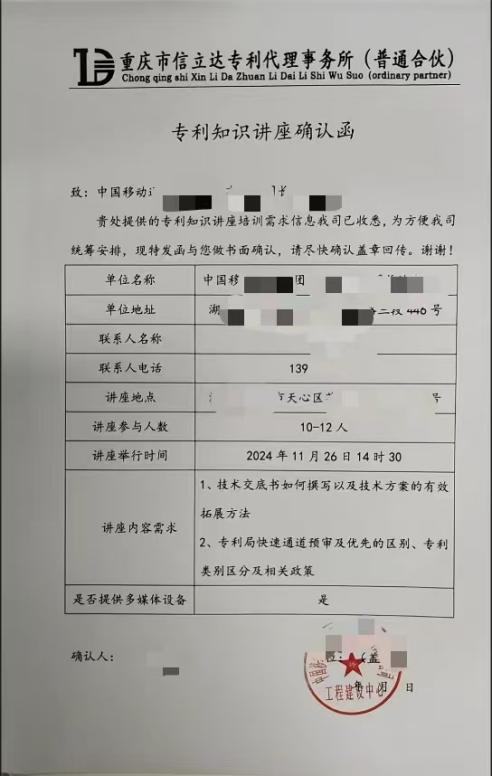 2024年11月26日14點30分,感謝中國**集團**有限公司**分公司的信任與邀請,我司開啟了十一月的專利第一講!