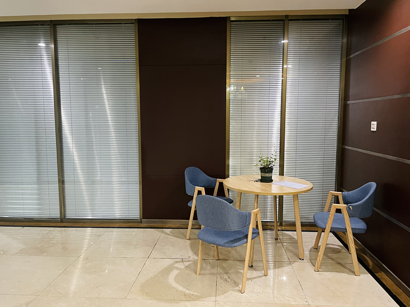 以上就是半個圈的辦公布局。接下來再次回到前臺視角,向右走,就是我司的會議區、培訓室、面試區、會客區、茶水間等。